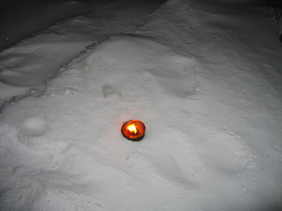 Фотография сделана автором, свеча на снегу, Финляндия, 2008