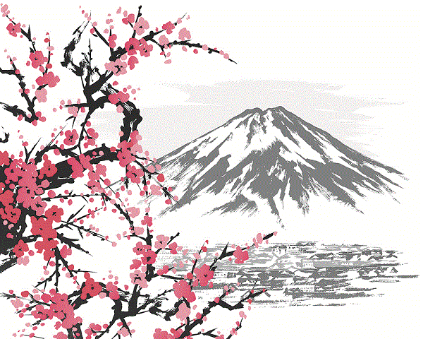 На снежную вершину Фудзиямы...
