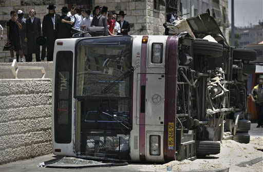 … Большинство пассажиров автобуса, ехавшего от Западной стены в религиозный район Хар-Ноф, составляли ортодоксальные евреи…