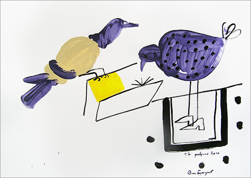 Сейчас я напишу строчку. Только подойду к столу, открою банку с чернилами. Лучше тушь. Чернила жидкие. Тушь, так тушь. Где же ручка? А, вот пёрышко, но им невозможно рисовать, карандаши ломаются. А эти шариковые ручки! Я не могу говорить о тебе.