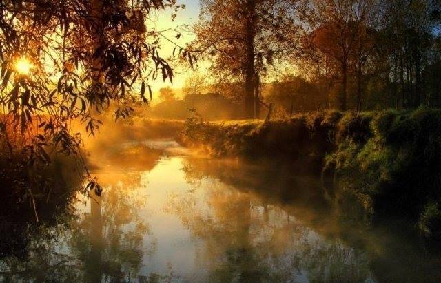 Туман вдоль леса над рекой струился,