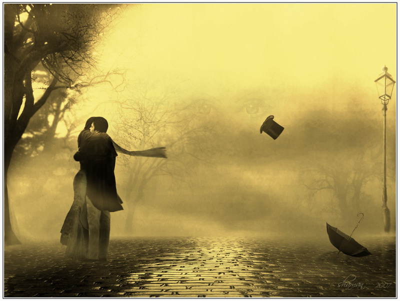 В неярком свете фонарей.