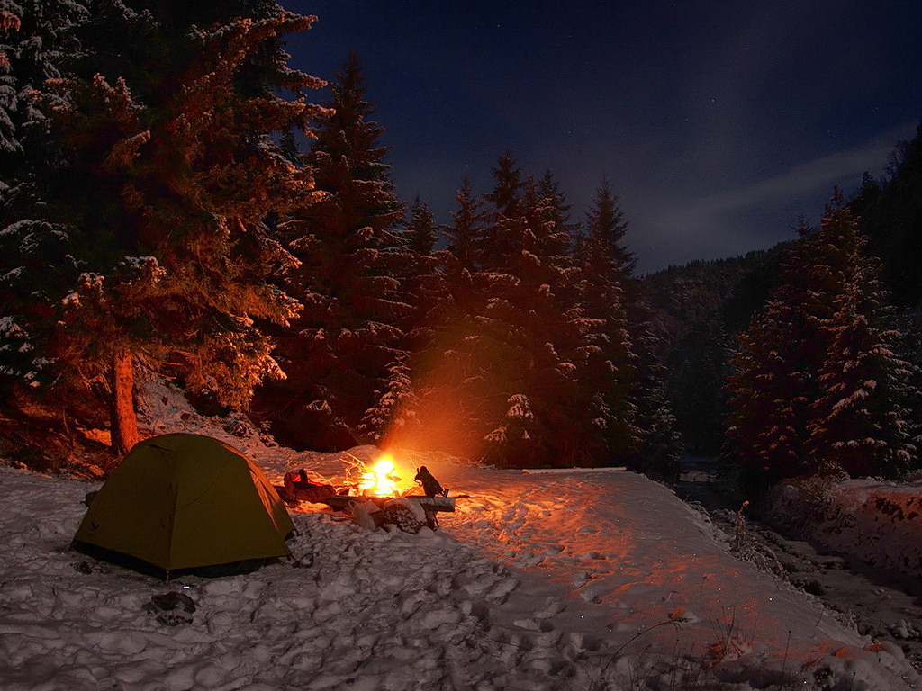У палатки нашей на снегу…