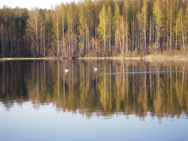 Тихо по озеру плавает птица.