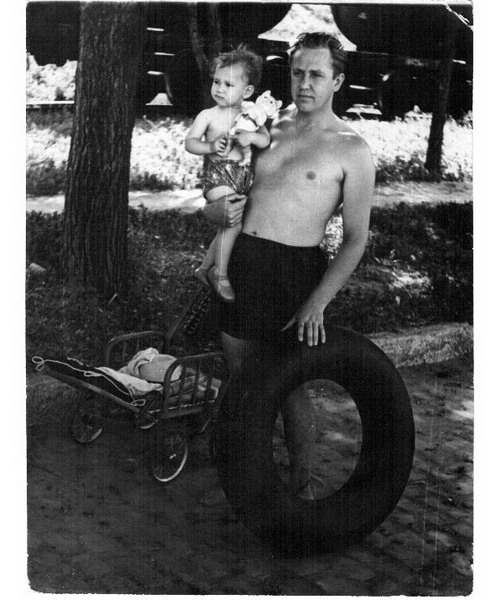 Отец в трусах, и мне не больше года,