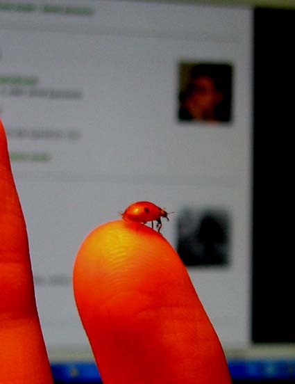 Среди зимы проснулась божия коровка.