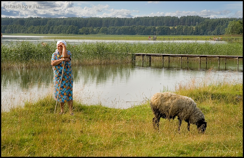 На взгорочек с палочкой вышла.