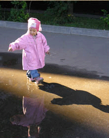 Почему взрослые не любят лужи? Обходят их, а если не могут обойти, сердятся. Я лужи очень люблю, особенно – большие, по которым можно идти в резиновых сапожках и делать брызги. Это очень весело! Вон передо мной – как раз такая лужа, она необыкновенная, круглая. Сейчас я пройду по ней!