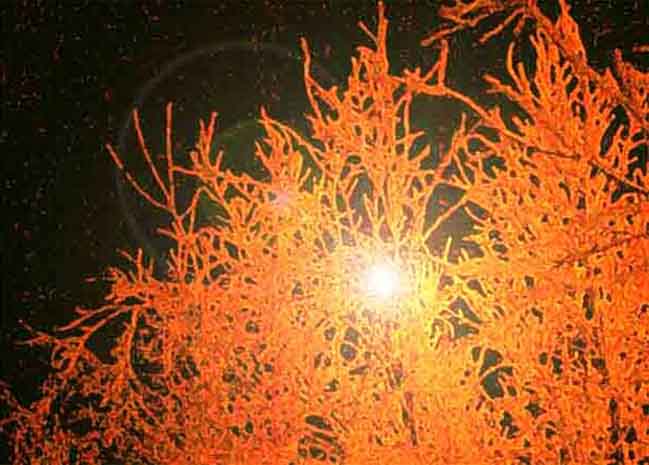 на темном небе кружева деревьев
