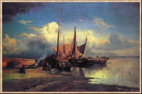 И ворчат рыбаки над ушицей, одесно.