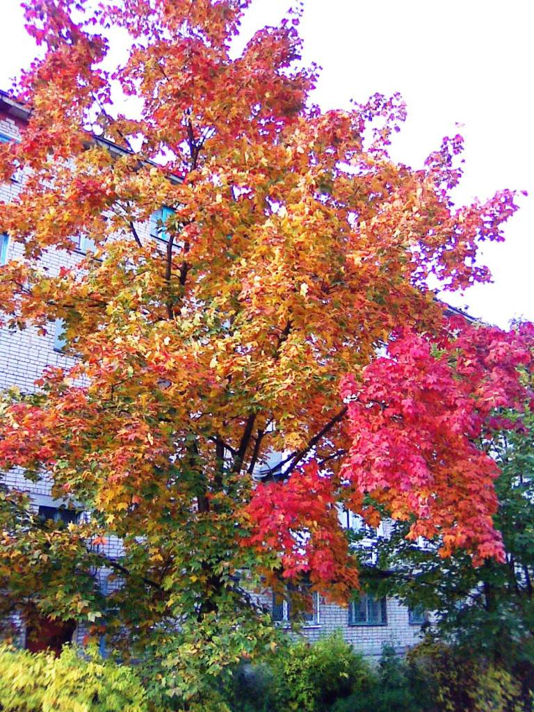 Как в осеннем саду светофором прикинулся клён.