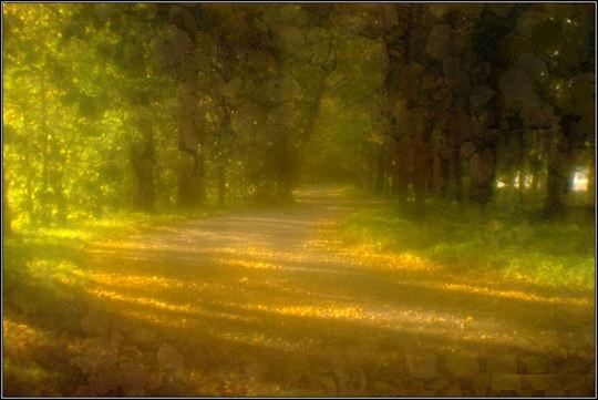 По ковру из жёлтых листьев.