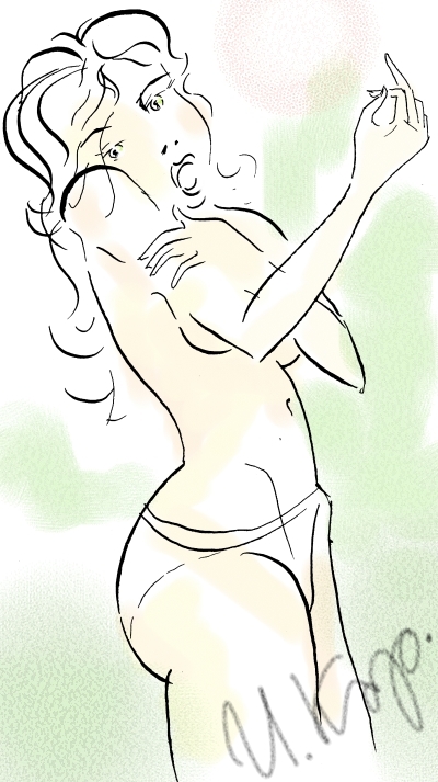 Дрожит вся, потому что голышом.