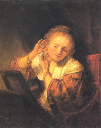 Молодая женщина, примеряющая серьги. Рембрандт