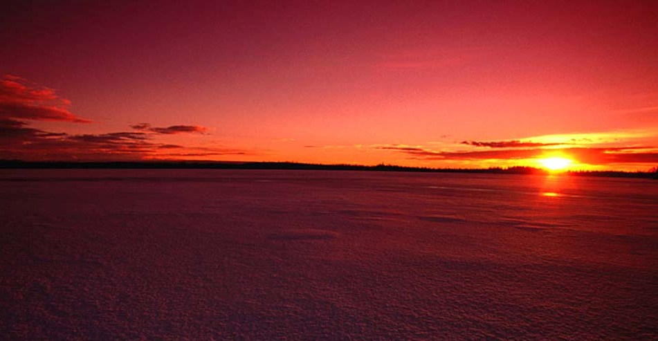 застывший лёд в закате алом.