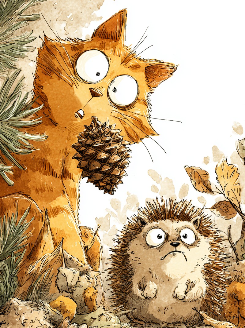 Ежик нюхал шишку носом,