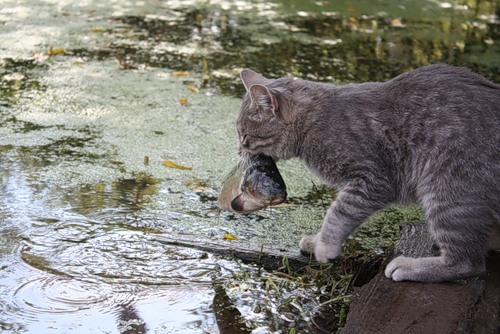 Котишке в рот попала.