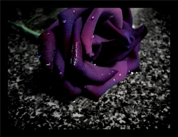 розу черную с голубою лентою.