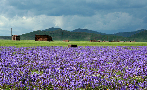 в пурпурном цвете поля