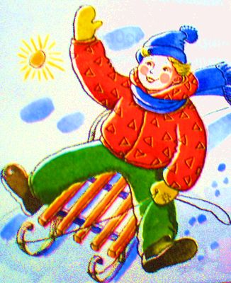 На салазках наш Егорка.