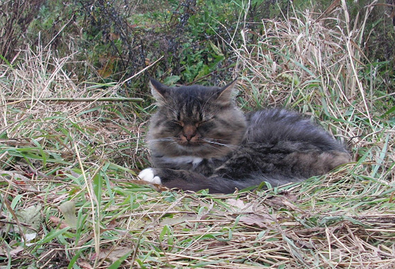 Кефир так любил играть в этих сухих осенних злаках- прыгать, кувыркаться, гоняться за собственным хвостом и за веткой в моей руке) И просто спать среди них... Тросниковый кот. Так я любил называть его в шутку. Невмеру мохнатое к зиме и вечно клокасто-линяющее летом-нечто с хищной мордочкой и распушенным хвостом... Таким он и останется в моей памяти и на немногочисленным вообщем-то фотоснимках. Которые со временем куда-нибудь растеряются и почти забудуться... Сколько их ещё таких будет. С другими животными...
