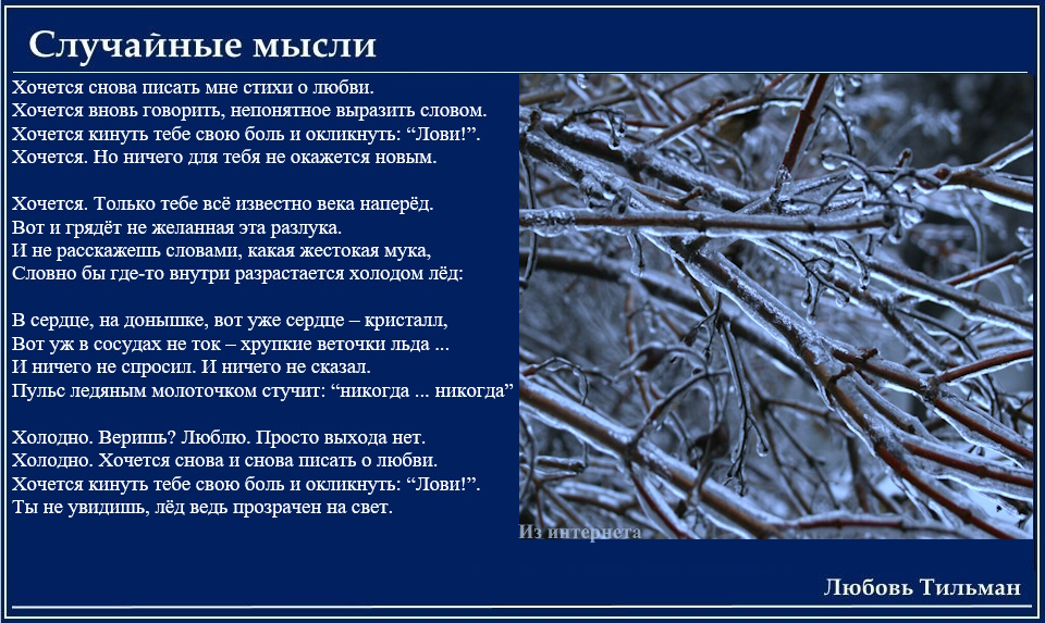 Холодно. Хочется снова и снова писать о любви.