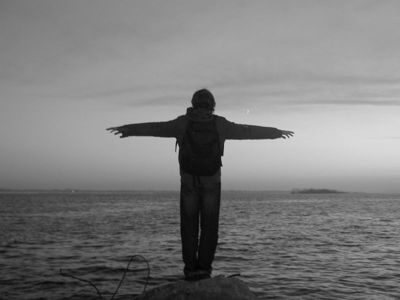 Он раскинул руки,