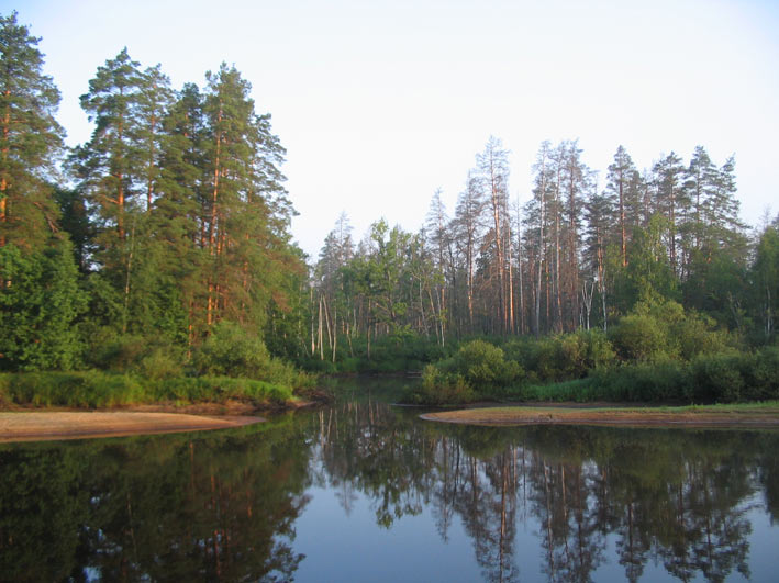 Сквозь сосны струится вниз.