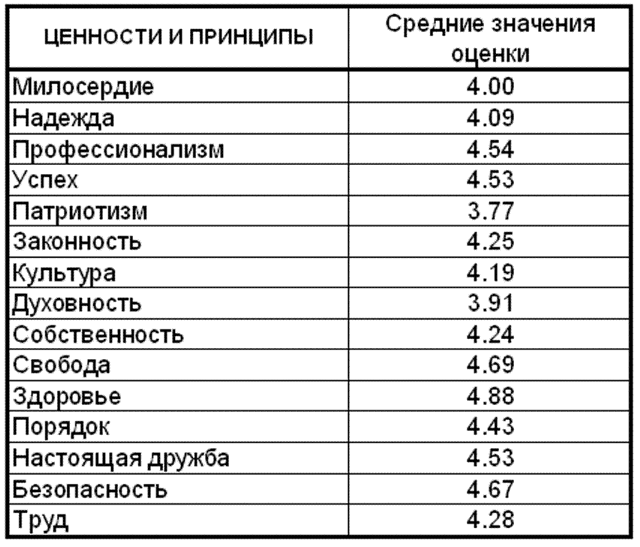 Шкала ценностей Виктору Трунтову