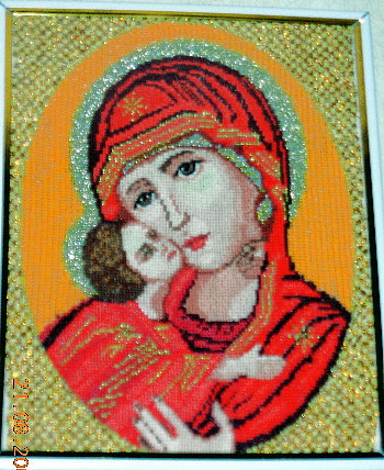 Она вышивает иконы.