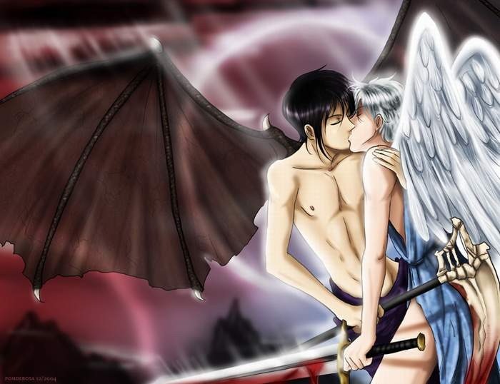 Ангел влюбился в чертенка во тьме.