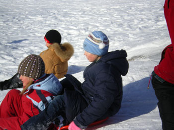 Детишки с санками скорей на горку,