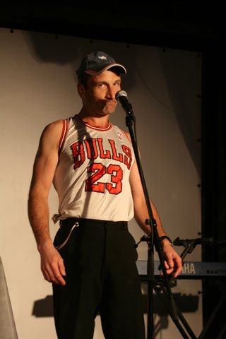 НА ФОТО: Алексей Герасимов исполняет поэтический перформанс на фестивале "Литература в музыке", Рига