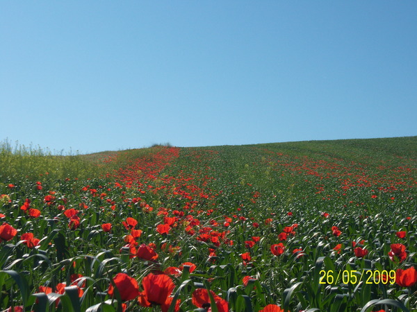 Километры красных маков, живой ковёр - огонь!