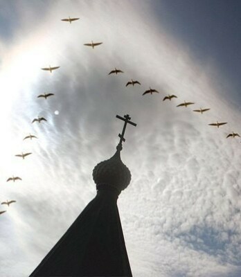 Клин журавлиный с клёкотом тревоги.