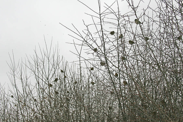 На деревьях - воробьи,