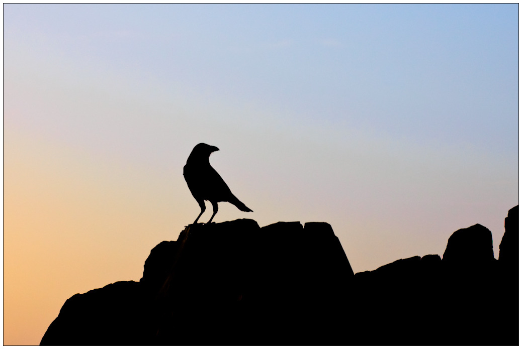 По пляжу бродит ворон.