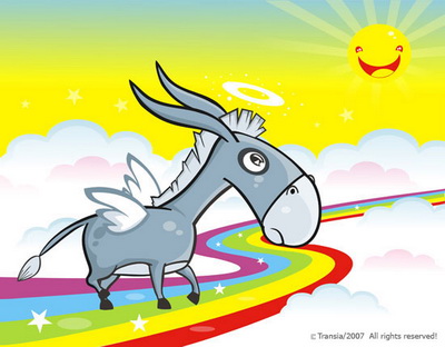 И ослик бежит, длинноухий, весёлой трусцой...