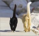 На снегу сидят коты ...