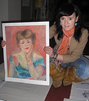 На стене моей комнаты висит копия портрета Ренуара "Актриса", сделанная дочерью. Мне очень нравится эта работа.