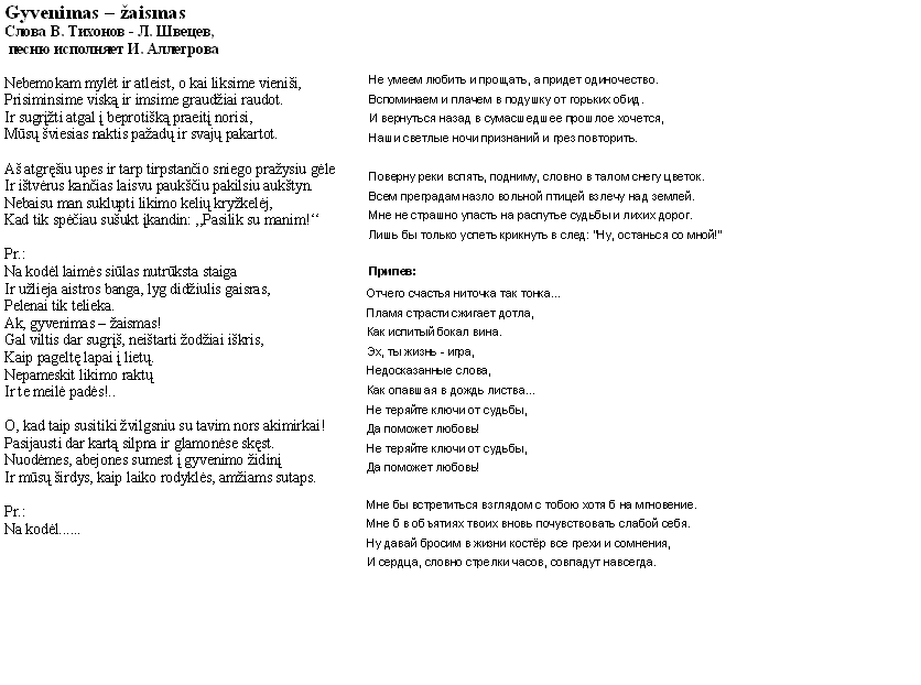 Gyvenimas - zaismas Жизнь - игра