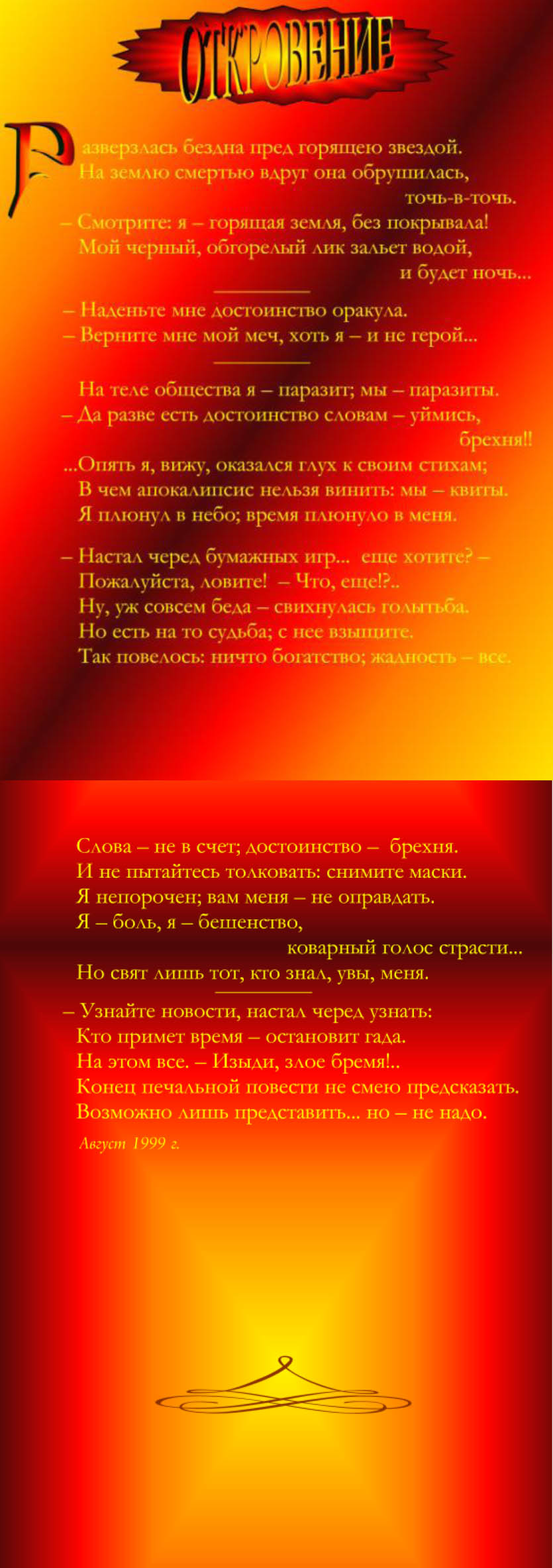 ...Опять я, вижу, оказался глух к своим стихам.