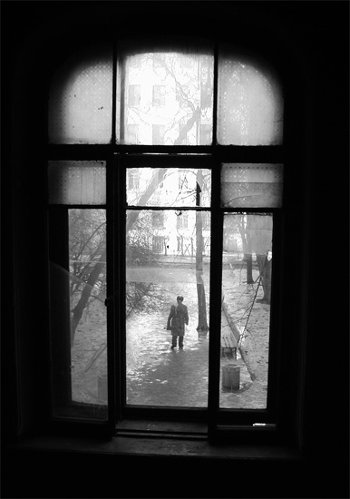 Чернея окнами от слез,