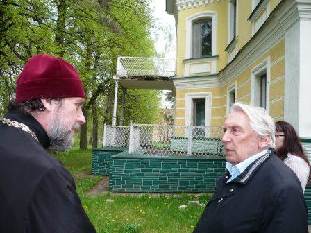На фото В.М. Сидоров и о.Виктор у бывшей усадьбы Грирория Григорьевича Гагарина в Карачарове на Волге.(Конаково)