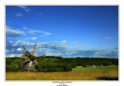 Долина Дон-Кихота (ветряные мельницы, деревья, люди, мельница...