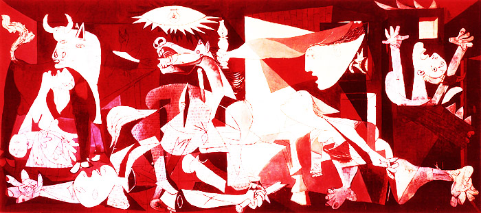 Постояв несколько секунд перед «Герникой» в народном исполнении, как нечто вросшее в землю, я сорвался с места и бросился бежать. Всё моё существо устремилось прочь от этого рукотворного апокалипсиса. Мало того, что я до этого вообще никогда не видел мёртвой плоти, да ещё расчлененной и вывернутой на изнанку, так они тут все, эти рогатые скелеты, еще и трахают друг друга. Но и это еще не все. Со всеми этими монстрами, в кровавой оргии, принимают участие человеческие тела с содранной кожей и человеческие скелеты! И среди последних, плюс ко всему, встречаются женские головы с огромными, окровавленными, порой напоминающими пожарные рукава, пенисами во рту. Ничего такого я тогда не то что не видел, но не мог бы себе и вообразить, при всем своем не по-детски ярком воображении. А кроме всего этого, была здесь и другая страшная загадка: на уровне подсознания я почувствовал, что всё это может быть правдой, то есть, что нечто подобное может происходить и происходит в реальности. Вот от этого я и пустился наутёк.