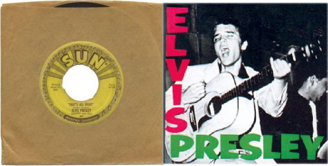 Слева - обложка дебютного сингла Элвиса Пресли
