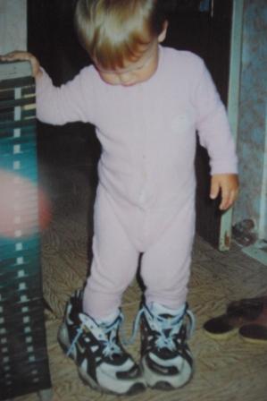 Обожает обуваться в чужие туфли. Как только друг придёт к брату - Никита уже вышагивает в кроссовках 45 размера!