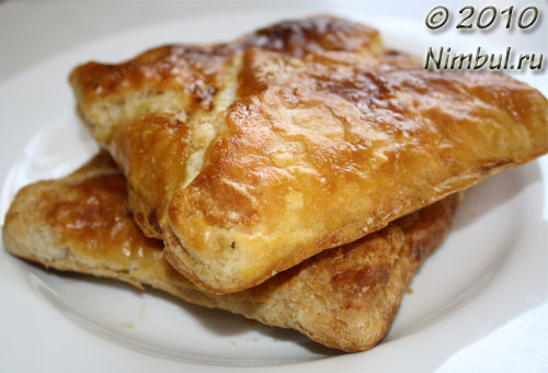 Ну что ж, друзья! Давайте испечём слоёные хачапури! Для теста возьмём 1/4 стакана растительного масла, 1,5 стакана воды, 4,5 стакана муки и щепотку соли! Хорошенько замесим и разделим тесто на 4 части! Заранее приготовим 2 пачки размягченного масла или маргарина! Я предпочитаю маргарин, не так жирно! Первую часть теста раскатаем, и по всей поверхности смажем 1/4 частью пачки маргарина, и завернем конвертом! И так поступим с оставшимися тремя частями! Одна пачка маргарина у нас ушла! Все четыре конверта посыпать мукой, положить на деревянную разделочную доску, тоже посыпанную мукой! Засунуть в целлофан и в холод на полчаса, только не в морозильник! Затем вытащить и смазать второй пачкой маргарина, по 1/4 на каждую часть теста! И завернуть конвертом! И опять в холод на полчаса! Хочу сказать: перед тем, как накладывать начинку, тесто раскатайте и сложите конвертом, чем больше раз Вы будете раскатывать и складывать конвертом тесто, тем больше будет слоёв, тем пышнее и вкуснее будет тесто! Если не собираетесь печь сию минуту, то тесто можно хранить 10, даже 14 дней в холодильнике! А для хачапури взять 0,5 кг брынзы, залить кипятком, чтобы было не так солёно, держать полчаса, затем вынуть, хорошенько размягчить, добавить 2 яйца, десертной ложкой накладывать на раскатанное тесто! У нас было четыре конверта, каждую часть разделить ещё на четыре части. У нас получится 16 хачапури! А СКЛАДЫВАТЬ ХАЧАПУРИ КОРАБЛИКОМ, т.е. соединять противоположные концы! Смазать яйцом, и в горячую духовку, заранее разогретую! Если не любите солёное, можно к сыру добавить творог, грамм 200. Но прелесть хачапури всё же в солёном сыре, так что лучше ешьте со свежими помидорами. Вкус специфический! Обалденно вкусно! А в конце хочу сказать: тесто универсальное! Можно сделать пирожки с мясом, с капустой, с любой сладкой начинкой! На здоровье!