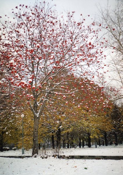 Только ягоды краснеют у рябины.